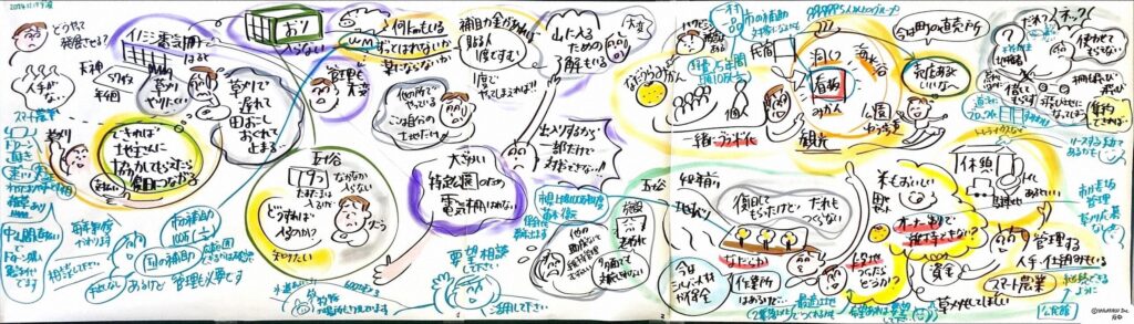同地区は農業者の高齢化や後継者不足が進行し、農業インフラの整備や鳥獣害などの課題も多かったことから話し合いが一時期停滞していたこともあったが、同手法で話し合いが活性化。住民同士が課題解決への議論の前に、実態や思いを共有できた。